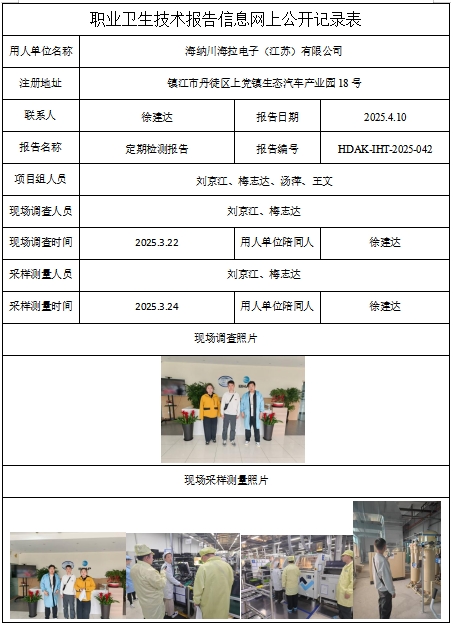 職業(yè)衛(wèi)生技術(shù)報(bào)告信息網(wǎng)上公開記錄表用人單位名稱日豐企業(yè)(鎮(zhèn)江)有限公司注冊地址江··· -