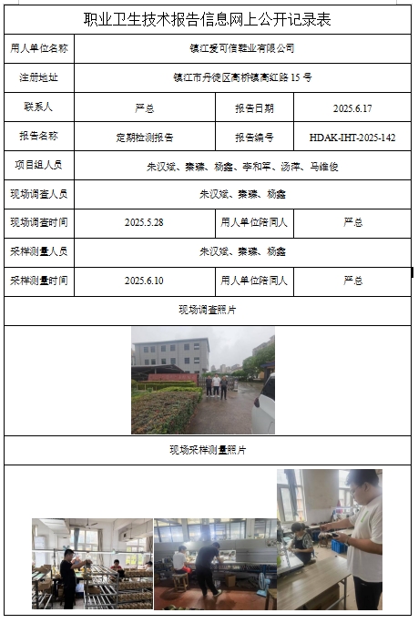職業(yè)衛(wèi)生技術(shù)報(bào)告信息網(wǎng)上公開(kāi)記錄表用人單位名稱華東聯(lián)合制罐有限公司注冊(cè)地址鎮(zhèn)江新···