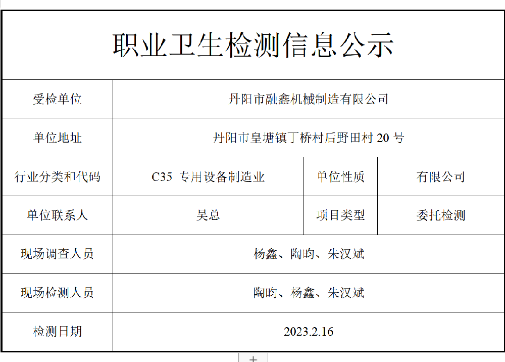 公示信息分類:職業(yè)衛(wèi)生檢測(cè)2023