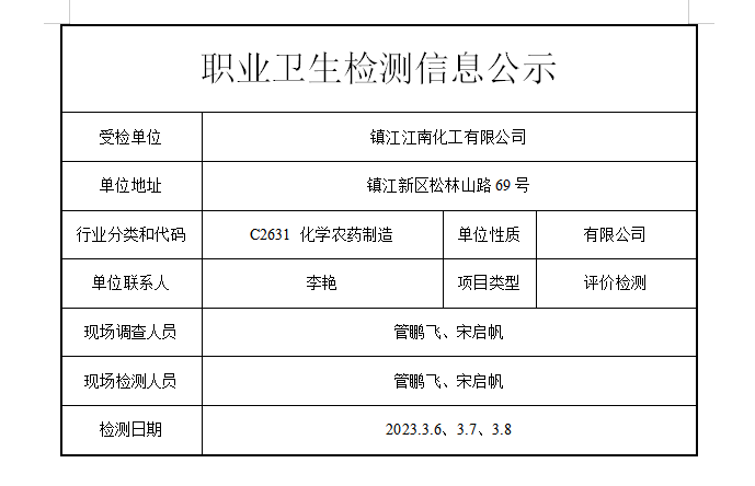 公示信息分類:職業(yè)衛(wèi)生檢測2023
